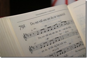 Vi sjöng tillsammans “Du vet väl om att Du är värdefull”, en jättefin psalm som vi faktiskt sjöng på min konfirmation. Jag visste inte att det var en psalm, jag trodde att det “bara” var en sång som sjöngs i kyrkliga sammanhang. Men nu vet jag bättre, psalm 791 alltså.